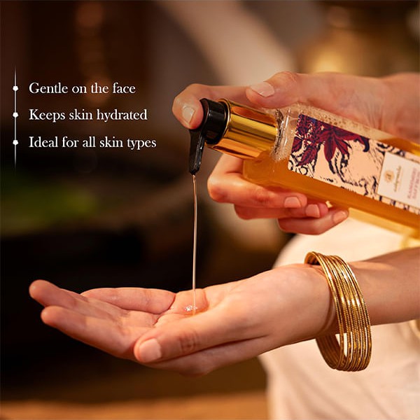 Нанесите количество очищающего средства Ashpveda Kashmiri Saffron & Neem размером с монету на влажное лицо, нежно помассируйте и дайте средству удалить загрязнения и очистить поры. Смойте и промокните кожу насухо.