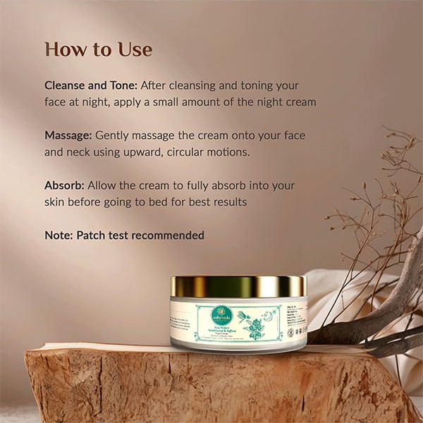 Нанесите питательный и восстанавливающий ночной крем Ashpveda Nourishing & Restoring Night Cream на чистую и сухую кожу лица и шеи перед сном. Позвольте его успокаивающей формуле побаловать вашу кожу, пока вы погружаетесь в безмятежный сон.