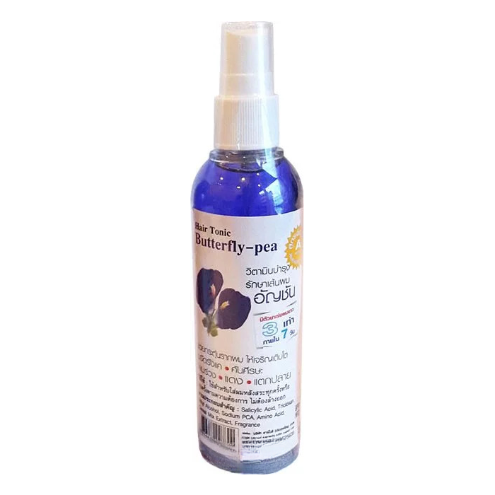 Genive Hair Tonic Buterfly Pea – синий лосьон для лечения выпадения волос и для ускорения роста волос. Основной компонент средства – синий чай анчан (клитория, мотыльковый горошек) – растение, произрастающее в Азии и обладающее бесценным составом и свойствами.