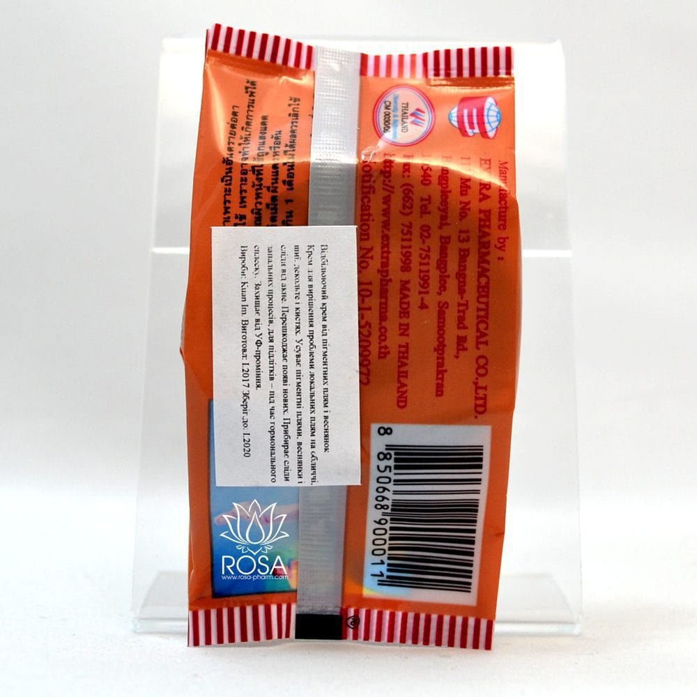 Тайский отбеливающий жемчужный крем от пигментных пятен и веснушек для лица эффективно и быстро устраняет меланиновые и пигментные пятна, веснушки и следы от акне. Крем устраняет старые пятна и препятствует появлению новых. Убирает следы от воспалительных процессов, особенно полезен для подростков в борьбе со следами акне и других высыпаний на коже. Точечный крем для решения проблемы локальных пятен на лице, шее, декольте и кистях.