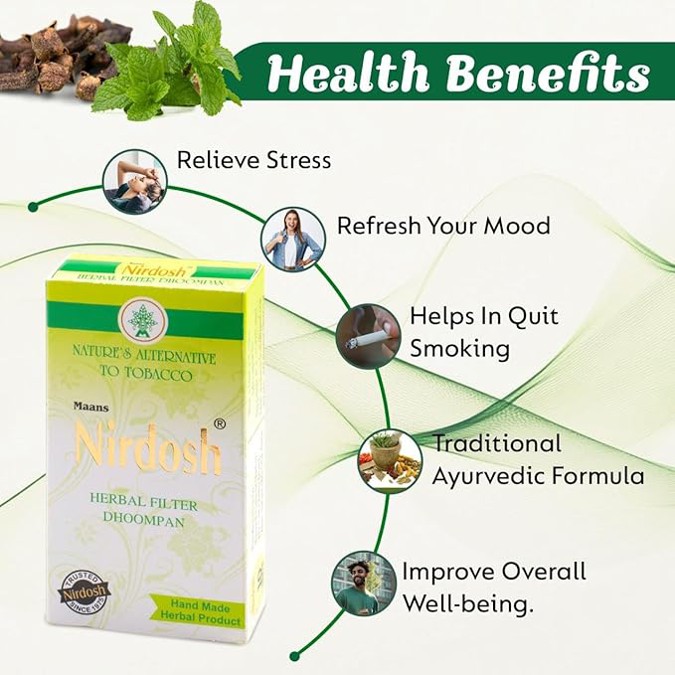 Нирдош – это специальные безникотиновые травяные сигареты. Фильтр также изготовлен из растительных компонентов. Нирдош оказывает положительный эффект на пищеварительную и дыхательную системы, повышает иммунитет. Ускоряет метаболизм, способствуя пищеварению и выведению токсинов из груди и легких.