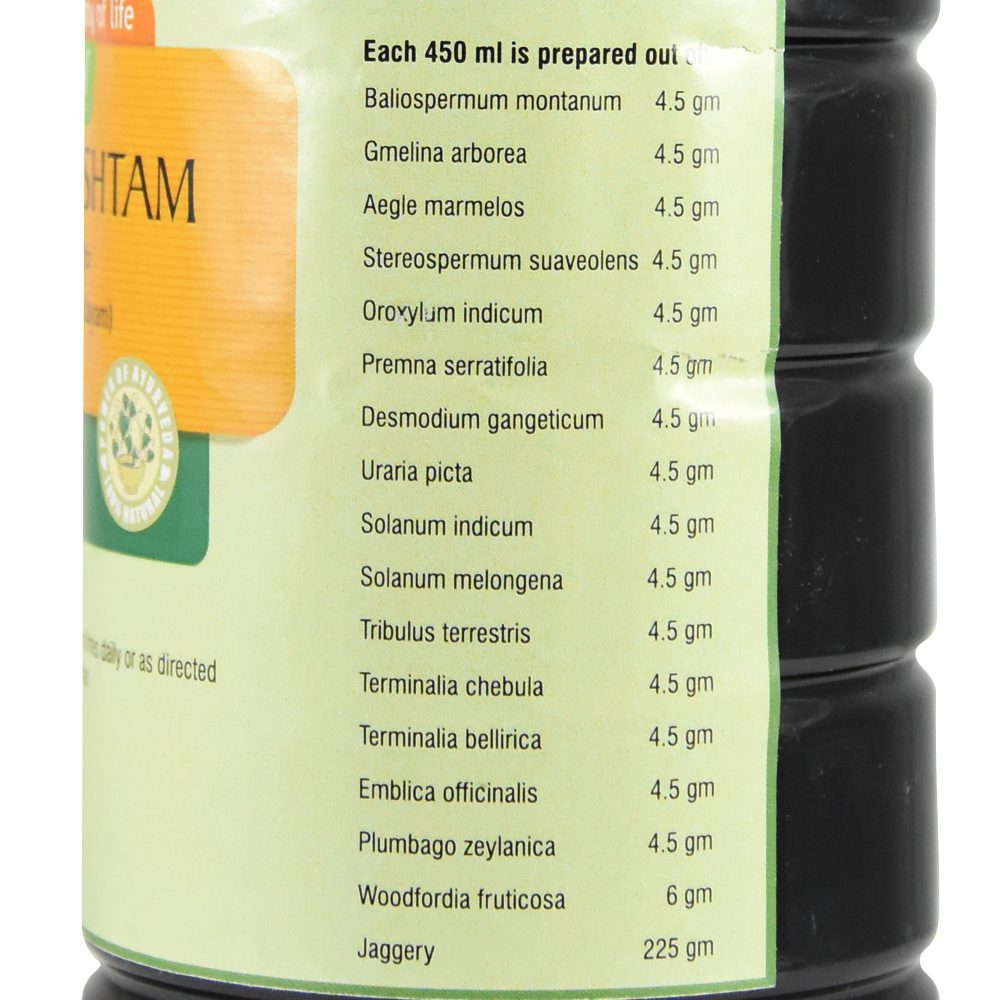 Дандиаришта – препарат, широко используемый в аюрведе как мягкое слабительное, балансирует пищеварительный огонь, устраняет метеоризм, стимулирует работу кишечника, снимает спазмы и боли в животе.