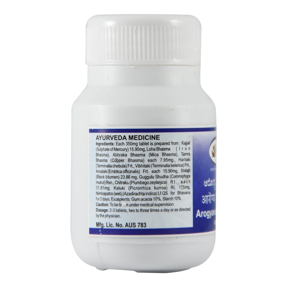 Состав: Shuddha Parad, Shuddha Gandhak, Loha Bhasma, Abhrak Bhasma, Tamra Bhasma, Triphala, Shuddha Shilajeet, Shuddha Guggul, Chitrakmoola, Kutaki, Nimbu Patra SwaRasa.