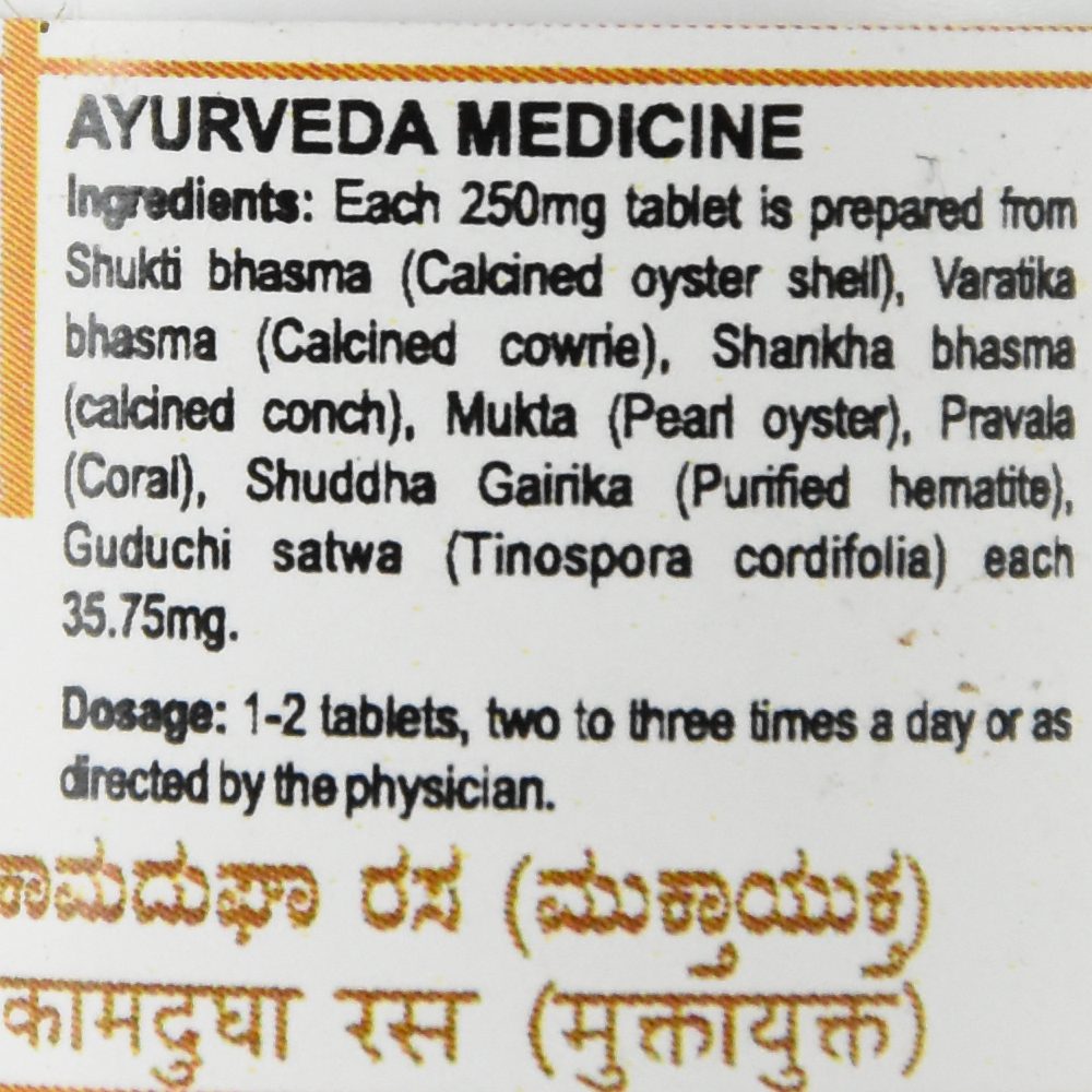 Этот препарат также известен как чистый Камдудха Рас, так как существет еще другая формула в состав которой входит Мукта Бхасма (морские раковины в форме порошка)