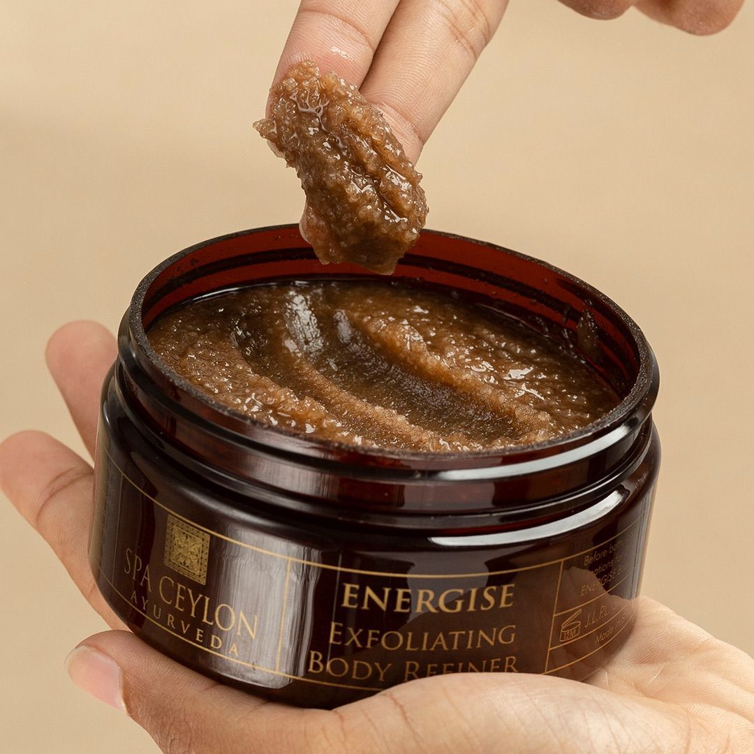 Очищающий эксфолиатор для тела ENERGIZE – расслабляющая оздоровительная формула Аюрведы, наполненная драгоценными аюрведическими травами и чистыми ароматическими эфирными маслами, согревает и заряжает энергией. Цейлонская маргоза и грецкий орех в сочетании с кокосовым сахаром первого отжима помогают очистить закупоренные поры, удалить токсины и ороговевшие клетки. Цейлонская моринга способствует общему обновлению клеток и помогает осветлить тон кожи. Органическая цейлонская корица бодрит, мягко снимая стресс. Освежающий бергамот способствует ясности и пробуждает чувства, а драгоценные восточные пачули помогают уравновесить чакры. Кокос и рисовые отруби первого отжима смягчают и разглаживают кожу, улучшая общее состояние здоровья.