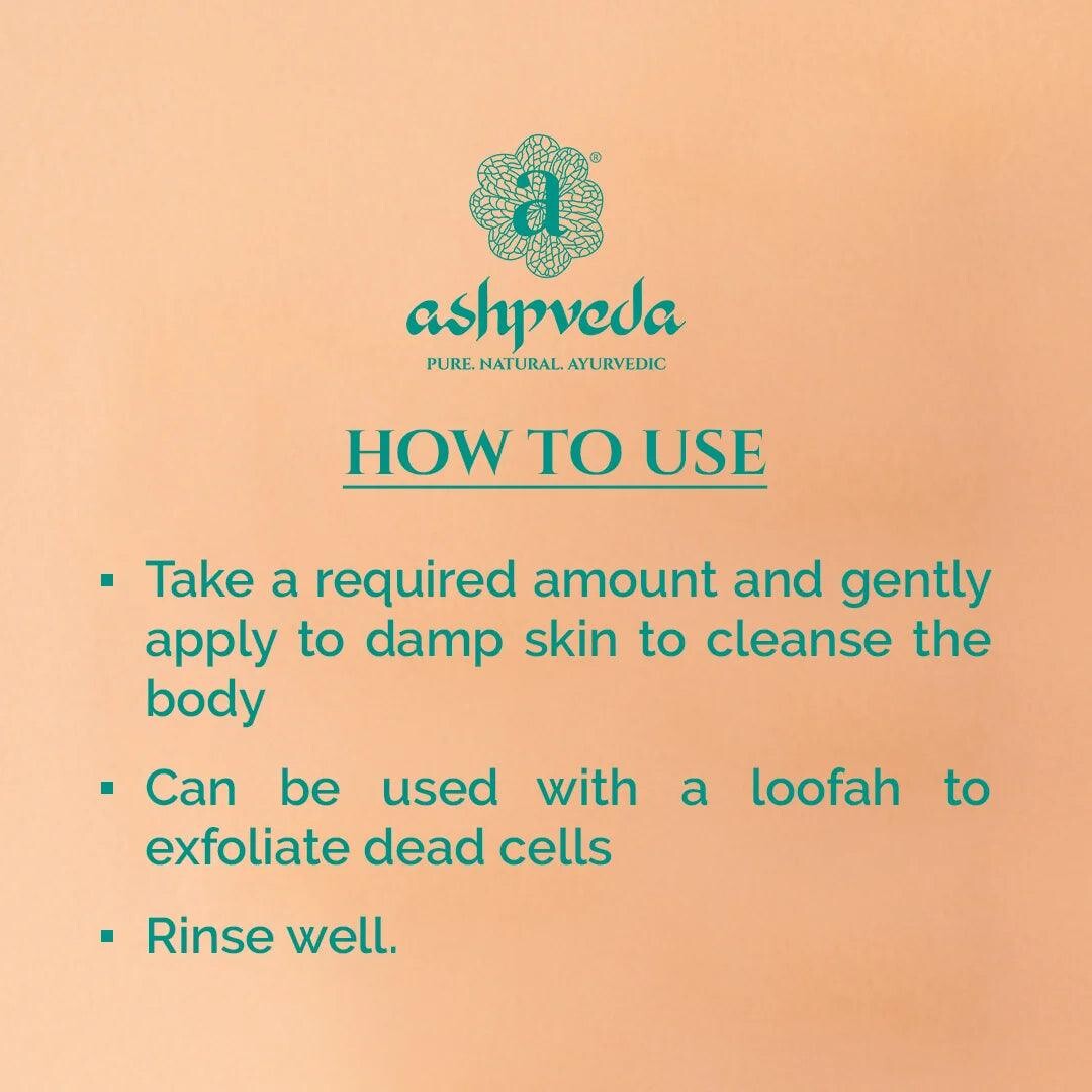 Нанесіть невелику кількість гелю для душу Ashpveda Kashmiri Saffron & Neem на вологу шкіру. М’яко помасажуйте круговими рухами, щоб натуральна піна очистила та освіжила шкіру. Ретельно змийте та промокніть насухо. Використовуйте щодня під час купання для м’якої, сяючої та збалансованої шкіри.