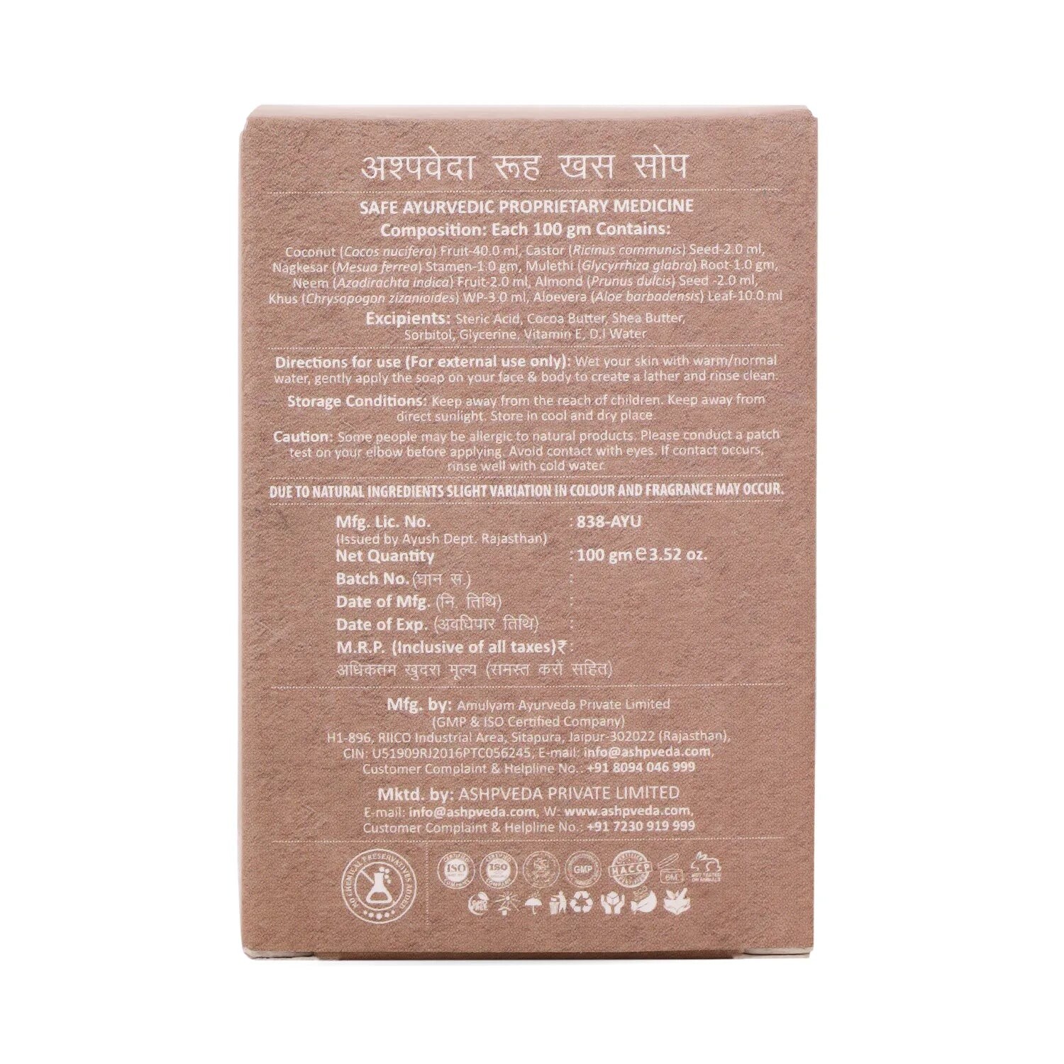 Мило для купання Ветивер (Ruh Khus Bathing Soap, Ashpveda) 100 грам