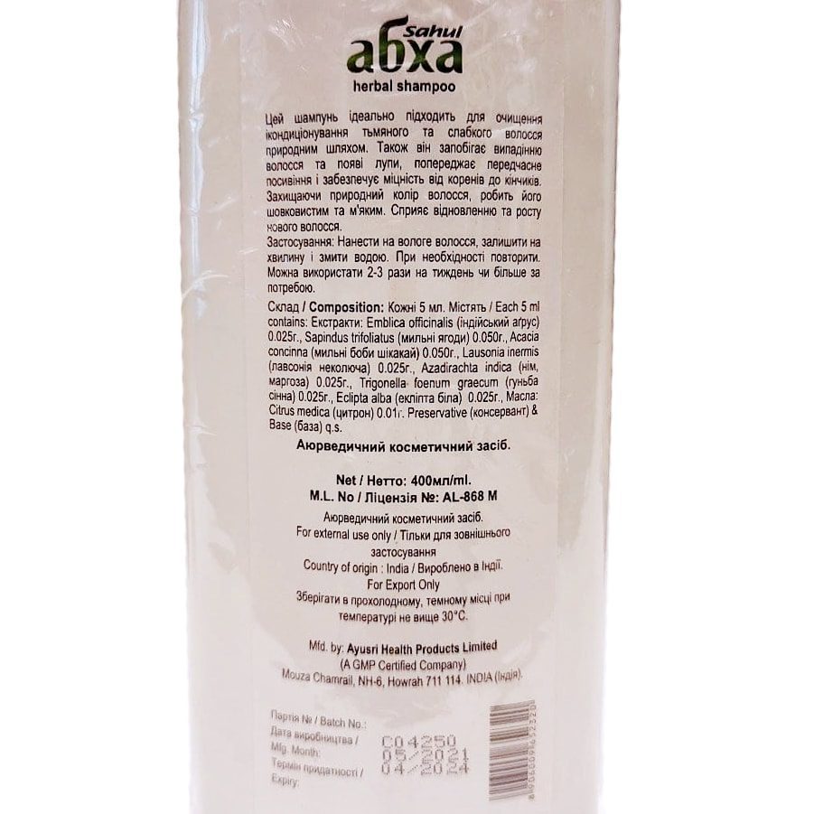 Трав’яний шампунь з кондиціонером Абха з Амлою, Німом і Лимоном ідеально підходить для очищення тьмяного і слабкого волосся природним шляхом. Він також попереджає випадіння волосся і появі лупи, попереджає передчасну сивину та забезпечує міцність від коренів до кінчиків. Захищаючи природний колір волосся, робить його шовковистим і м’яким. Допомагає відновленню та росту нового волосся.