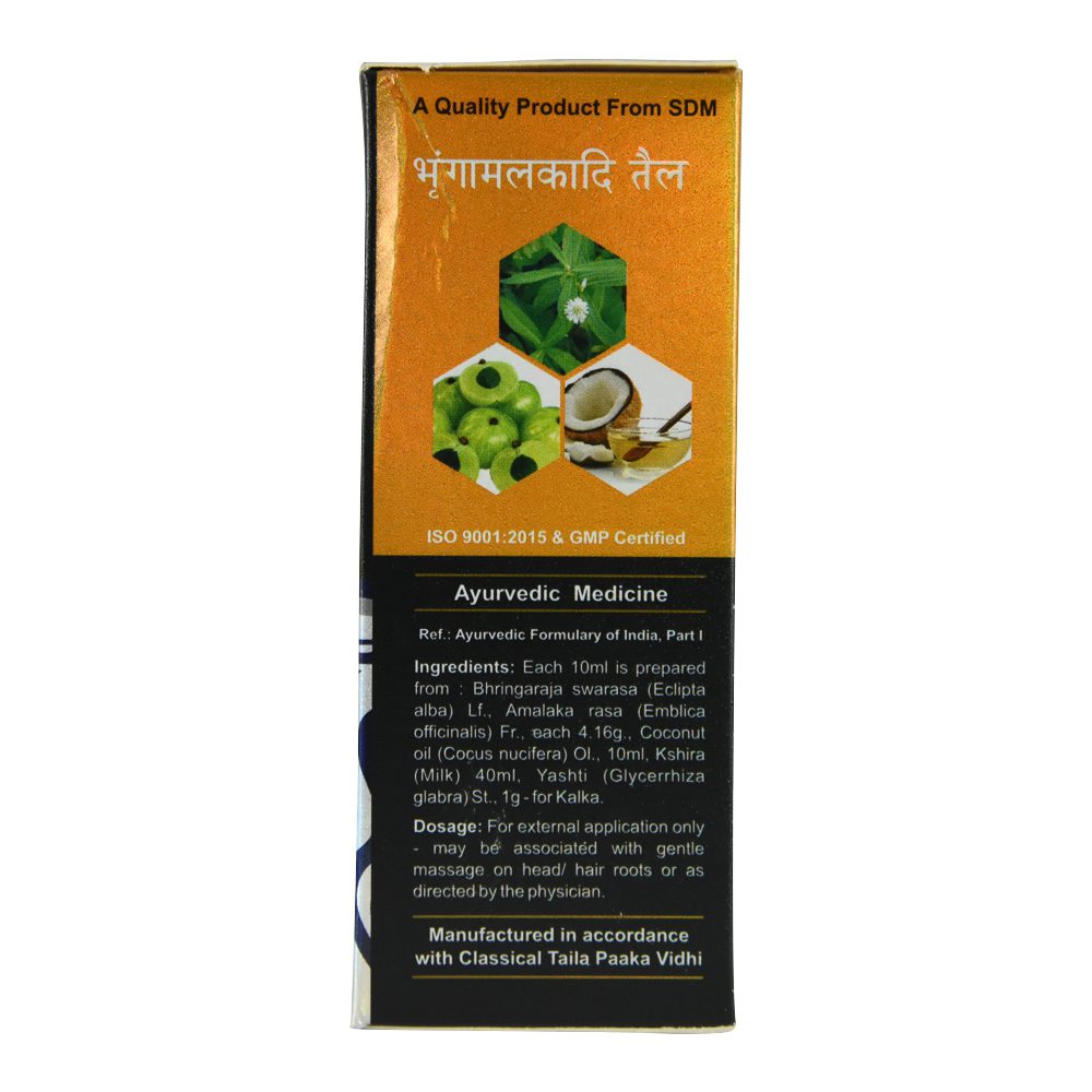 Брінгамалакаді Тайла – аюрведичне масло для масажу голови. Дуже добре підходить для проведення масляного масажу голови (Шіроабьянгі). Надає охолоджуючий ефект на голову, має протизапальну, заспокійливу дію. Брінгамалакаді Тайла ефективно при психічних захворюваннях, галюцинаціях та безсонні, також рекомендується людям у яких захворювання очей, погіршений зір, слух, головний біль, запалення середнього вуха. Добре застосовувати при перевтомі, при втомі від читання і т.п. Масло посилює ріст волосся, живить їх і зміцнює, поліпшує структуру, надає блиск і шовковистість, робить волосся слухняним та сильним, зупиняє випадіння волосся, усуває лупу.