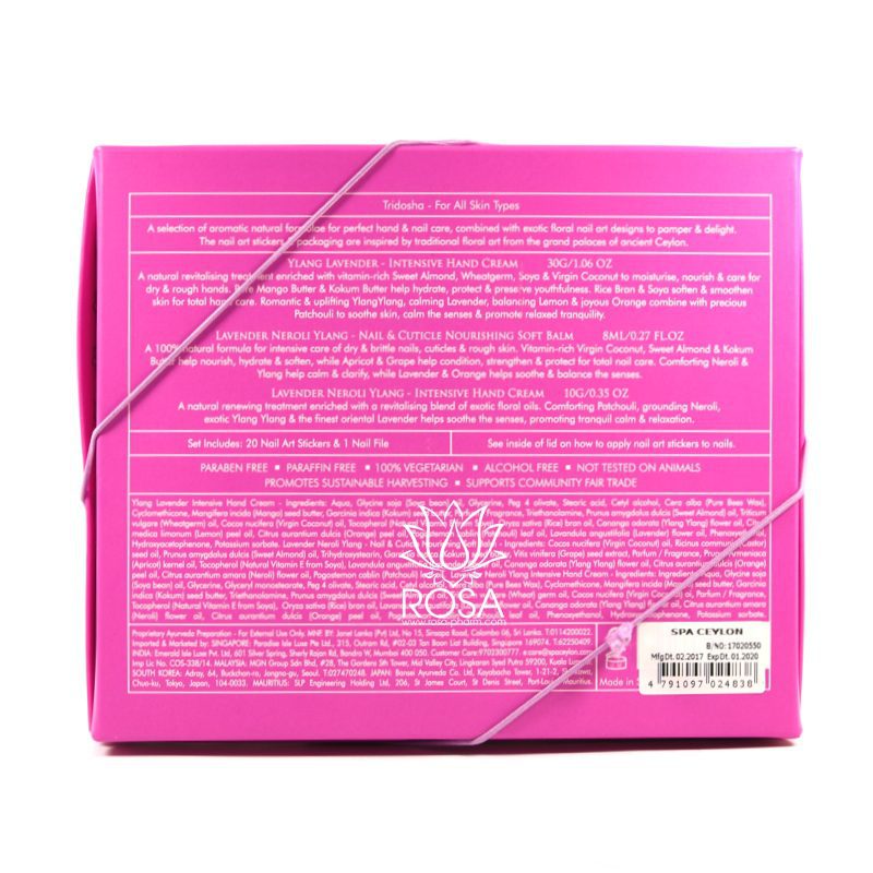 100% натуральна формула для інтенсивної обробки сухих та ламких нігтів, кутикули та огрубілої шкіри наведення нігтів. Багаті вітамінами кокосове та рисове масло, солодкий мигдаль і кокум живлять, зволожують та пом’якшують. Абрикос, виноград та цейлонський чай покращують загальний стан, зміцнять та захищають нігті. Заспокійливі Неролі та Іланг допоможуть заспокоїтися та прояснити розум, Лаванда та Помаранців заспокоюють та балансують почуття.