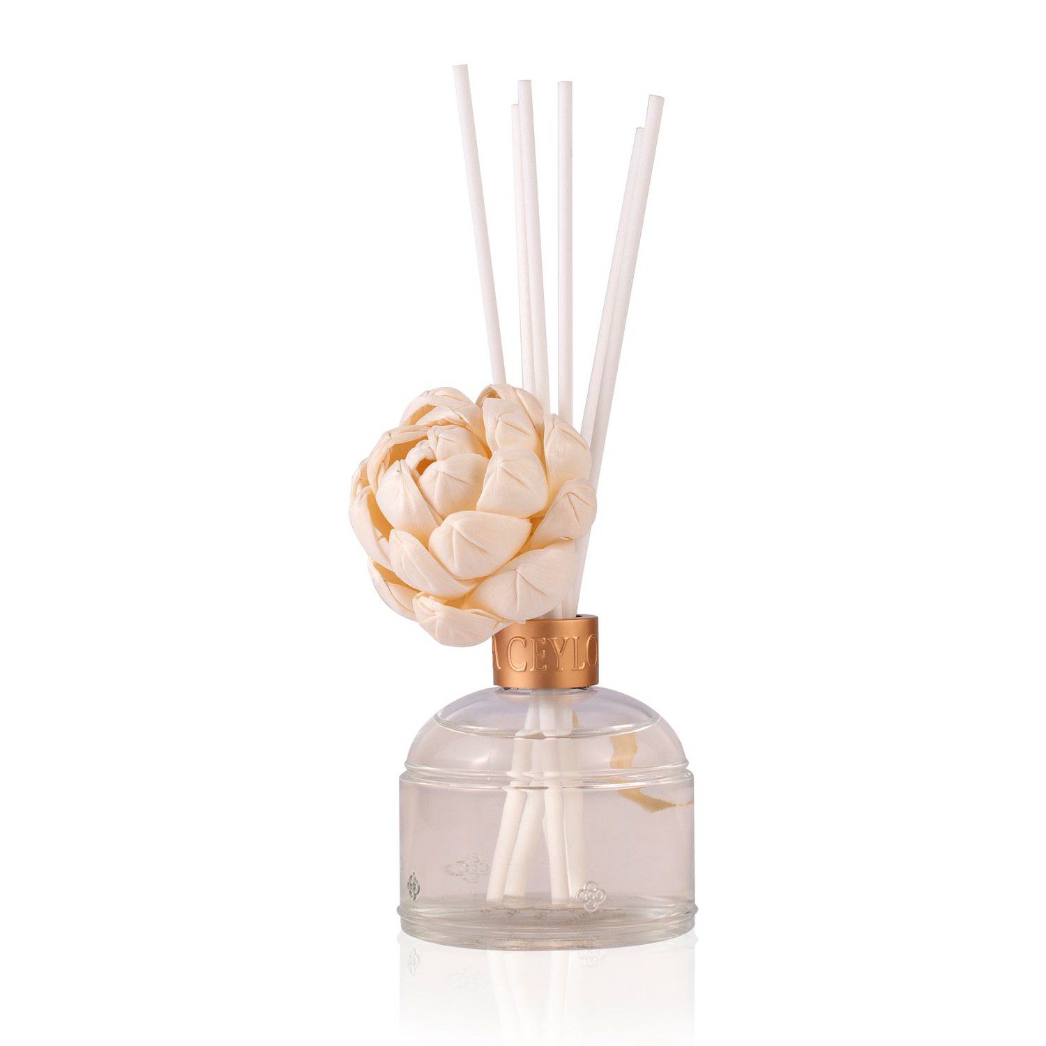 Декоративний натуральний кімнатний ароматизатор, що поєднує вінтажне скло, квіти і волокнисті палички. Ароматизатор із сумішшю цейлонських квітів та натуральних ефірних олій, м’яко та безперервно наповнює ваш життєвий простір силою Аромаведи, щоб заспокоїти, підняти настрій та освіжити ваше тіло, розум та душу.